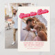 Diese moderne rosa und rote Save-the-Date-Karte enthält eine fettgedruckte, retro-inspirierte Überschrift, die mit einem großen Foto auf der Vorderseite kombiniert ist, um einen augenfälligen ersten Eindruck zu hinterlassen. Saubere Typografie und warme Töne sorgen dafür, dass das Layout sich fun, gepflegt und leicht lesbar anfühlt. Ein zweites Foto erscheint auf der Rückseite und gibt Paaren ein bisschen extra Platz, um einen weiteren Lieblingsmoment zu teilen, während das Gesamtdesign einfach und ausgewogen bleibt. Ideal für Paare, die eine fotoorientierte Save-the-Date-Karte möchten, die persönlich, modern und unvergesslich ist.
