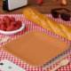 Retro Moderne Solid Color. Ein wunderschönes Waschbecken mit durchgehender Vollfarbe. Vintager Schatten der gewürzten Orange.