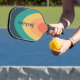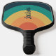 Cooler, schlichter Retro-Vintager Regenbogenbogen in blau aquamarin grün gelb und orange mit personalisiertem Namen Pickle Ball Paddel. Moderne Retrotypografie und einfach zu bedienende Vorlagen. Personalisiertes, modernes Hippie-Design der 70er Jahre. Original-Kunstwerk von Catherine Sweetman