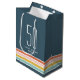 Mit dieser stilvollen Retro-Geschenktasche verwandeln Sie Ihr Geburtstagsgeschenk! Modernes, schlichtes Design mit horizontalen Streifen in dunkelblau-grau, weiß, blau-grün, Senfgelb, rosa und orange-pfirsichfarben. Fügen Sie einfach den Namen des Empfängers und das feierliche Alter hinzu, um es einzigartig zu machen. Perfekt für jedes Alter und besondere Jubiläumsjahre. Aus hochwertigem Papier in einer matten oder glänzenden Ausführung.