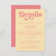 Retro Moderne rosa und gelbe Hochzeitsdetails Begleitkarte