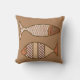 Moderne, skurrile Retro-Fischmuster werfen Kissen in den Tönen Bräune, Rost, Beige, Braun und Weiß auf einem hellbraunen Kakaoboden