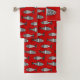 Retro Moderner Fisch, tiefrot und grau / grau Badhandtuch Set