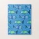 Retro Moderner Fisch, Türkis und Cerulean Blue Puzzle