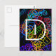 Retro-moderner Name & Monogramm Helle Farben & Sch Postkarte