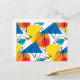 Diese farbenfrohe Postkarte ist mit einem Muster aus Dreiecken und Kreisen geschmückt und ist ein moderner Akt zeitgenössischer Entwürfe aus der Mitte des 20. Jahrhunderts.