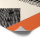 Dieses gewagte geometrische abstrakte Kunstwerk verbindet Retro-Charme mit modernem Design. Mit aquamarinen, senfgelben, gebrannten, orangen, schwarzen und roten Blöcken in feinen, eckigen Kompositionen präsentiert der Druck die Textur durch ausgekleidete Muster und Schnittformen. Ideal, um jedem modernen oder inspirierten Raum eine spielerische, aber strukturierte Ästhetik hinzuzufügen.