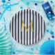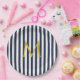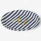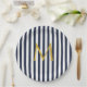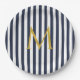 Retro Monogram Navy Blue & White Streifen Streifen Pappteller