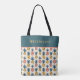 Diese reizvolle Tasche mit stilisierten Ananas in Rosa und Gold, mit aquamarinen grünen Blätter. Die Oberseite der beiden Seiten ist farbgeblockt im selben aquamarinen Grün, mit goldener Schrift für Ihren Monogrammnamen oder Ihre Initialen. Der Hintergrund ist Vintag cremefarben.