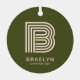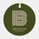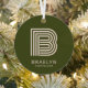 Dieses stilvolle orangefarbene und grüne Weihnachtsschmuck verfügt über ein vielseitiges Retro-Monogramm mit Ihrem personalisierten Namen und individuellem Jahr.
