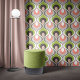 Bring a touch of retro flair to your interiors with this joyful wallpaper featuring a unique geometric design. The retro mood pattern combines calm and vivid colors that can transform any room into a stylish haven. Perfect for those looking to make a bold statement, this wallpaper is sure to impress your guests and enhance your decor. Explore the endless possibilities of revitalizing your environment and express your personality with this eye-catching design.