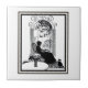 Ein Schwarz-Weiß-Bild einer Frau in einem Schaukelstuhl, mit einer Katze zu ihren Füßen. Das Wort "Mutter" wird über dem Fenster geschrieben. Bild aus einem Vintagen Druckerbuch aus den 40er Jahren (ohne Copyright).