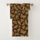 Dieses Badetuch-Set mit Retromotten und Blume auf den Flügeln in den beliebten Farben der 70er Jahre wie Orange und Olivgrün.