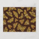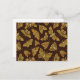 Diese Postkarte hat Retromotten mit Blume auf ihren Flügeln in den beliebten Farben der 70er Jahre wie Orange und Olivgrün. .