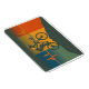 Dynamic retro-style design featuring a mountain biker silhouette riding over a hill with a glowing heartbeat line running through the artwork. The warm sunset gradient and vintage stripes create a bold and energetic aesthetic that perfectly captures the passion of mountain biking.