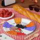 Rot, Blau, Gelb, Weiß, Gender Neutral Film Nachtthema Geburtstagsparty Teller in einem handgezeichneten Pop Art Digital Art Stil.