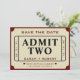 Retro Movie Ticket Stub Admit Two Wedding Save The Date