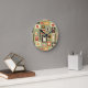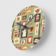 Retro-Muster mit Geschirr zum Frühstück Runde Wanduhr