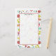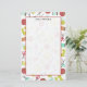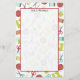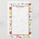 Briefpapierpapier, das einen nähenden themed Entwurf besteht einer Nähmaschine, Spulen des Fadens, einem Buttonkissen, Scheren, Gewebemustern und aus nähenden Nadeln kennzeichnet. Entwurf hat ein Retro Rotes, Gelbes, Orange, Blaues und Türkis-Farbschema.