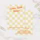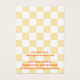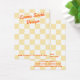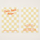 Die Schmuckkarte mit Ihrem Firmennamen in einem orangefarbenen Retrostil-Schriftart über einem hellgelben und weißen Schachbrettmuster