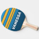 Bring a sense of depth and dynamic energy to every match with the Retro Navy Blue Horizon Striping with Name Ping Pong Paddle. Sweeping horizon-inspired patterns in rich navy tones create a flowing rhythm and striking visual presence with each swing. Personalized with a name, it reflects your individuality and style. Whether in lively rallies or relaxed games, this paddle adds color, movement, and a bold, captivating touch to every moment on the table.