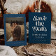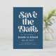 Retro und elegante Save the Date Karte mit boho Schriftart, der "Save the Date" in marineblau Farbe sagt. Sie können ein Foto auf der Rückseite hinzufügen.