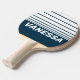 Retro Navy Three Horizon Striping with Name Ping Pong Paddle carries the serene depth of a midnight sky stretching across calm waters, with horizontal bands that flow in quiet layers like gentle waves. The subtle gradation creates a steady rhythm that soothes the mind while sharpening focus, giving each rally a sense of balance and control. This design brings a composed and confident presence to the game, allowing every point to unfold with the calm elegance and quiet strength of a navy horizon at twilight.
