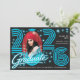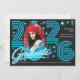 Retro Neon Blue Photo Graduate Announcement Einladung