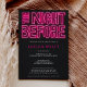 Mach dich schon für die Nacht vor! Probieren wir den großen Tag der Paare mit unserem neonrosa Retro-Neon-Stil in der Nacht, bevor wir auf schwarz schreiben A coole und funky Probe Dinner Einladung mit lustigen Drehbüchern.