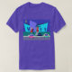 Dieser Retro offenes Haus-Party-T - Shirt setzt Sie in die partying Stimmung ein. Die CartoonAusrüstungsbeschreibungen das Äußere eines modernen Hauses der Mitte des Jahrhunderts. Durch den Boden zu den Deckentürkis-Glaswänden, können wir die Marineblau-Silhouetten festlicher Party Goers sehen. Es gibt Paare, die vor einem Fenster plaudern. Auf der gegenüberliegenden Seite des Raumes können wir sehen, dass ein Tanzenmann und der langatmige Mann jeder versucht zu vermeiden. Das Äußere des Hauses kennzeichnet eine heitre rote Tür und einen lila Ziegelsteinüberformatkamin. Ein grauer Gehweg schneidet eine Schwade zur vorderen Tür, durch das aquamarine Gras. Die Nachtzeitszene hat einen dunkelblauen Himmel mit einem Gelb, sichelförmigen Mond. Ein attraktives Paar tut den Cha-cha-cha auf der Weise zu ihrem Auto. Die blonde Frau trägt ein helles rotes Kleid. Ihre hübsche Eskorte trägt einen schwarzen Anzug und eine rote Krawatte. Seine Hände werden um die Taille der Frau eingewickelt. Auf der Straße vor dem Haus, können wir drei, hell farbige klassische Autos sehen. Auftrag heute und Party wie es ist 1959!