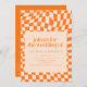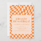 Retro Orange Abstract Check Wedding QR Code RSVP Einladung