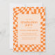 Einladung zur Retro Orange Abstrakt Checkerboard Graduation Party