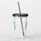 Personalisierter Acryltumbler mit einer Abbildung von Birkenbäumen mit Orangenvögeln, die auf ihren Zweigen sitzen. Retro grüner Hintergrund.