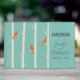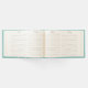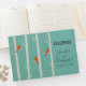 Ein Gästebuch für Hochzeiten mit einer Darstellung der Birkenbäume mit Orangenvögeln, die auf ihren Ästen sitzen. Retro grüner Hintergrund.