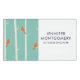 Namensschild mit einer Abbildung von Birken mit Orangenvögeln, die auf ihren Zweigen sitzen. Retro grüner Hintergrund.