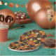 Die Teller sind in Retrofarben in Gelb-, Orange-, Braun- und Marineblau gehalten. Es ist fast wie in den 1970ern.