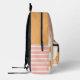 Rucksack mit Retro-gestreiftem Design mit Polka-Punkten und einem niedlichen Bär mit Ballons. In schönen Pastellfarben Rosa und Orange. Der Bär ist optional und Sie können auch ein benutzerdefiniertes Foto hinzufügen, wenn Sie möchten. Ein toller Rucksack für Babys.