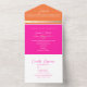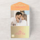 Dieses moderne Retro-Hotel empfängt Sie mit einer einladenden und lebhaften Palette an hellen Orange- und Rosatönen und empfängt Sie in einer pulsierenden Romantik. Ein goldenes Seilherz aus Imitaten verleiht der Touch zeitloser Eleganz, während auf der Rückseite ein individuelles Foto des Ehepaares, Hochzeitsdetails und UAWG für ein nahtloses Gast-Erlebnis enthalten sind. Diese Einladung eignet sich perfekt für lustige, stilvolle und unvergessliche Feiern und erweckt in jeder Hinsicht das Wesen Ihrer Liebe. Wichtig: Diese All-in-One-Einladung erfordert einen separaten Umschlag für das Mailen.