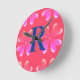 Retro-Orange-Rosa der personalisierten Monogramm Runde Wanduhr