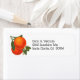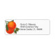 Editierbare Rücksendeadressen-Aufkleber mit einem Schriftart und zwei reife Orangen auf einem Zweig mit kleinen weißen Blüten, die gegen grüne Blätter blühen, von Vintagen Kartonzeichnungen.