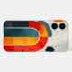 Mit einer Retro-Farbpalette aus Orange, Rot und aquamarin präsentiert dieses Gehäuse einen gewölbten Regenbogen über einem sterngesprenkelten dunklen Himmel, der ein Gefühl aus Nostalgie und kosmischem Rätsel hervorruft.