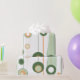 Dieses Kunstwerk zeichnet sich durch ein elegantes und minimalistisches Muster aus runden und länglichen Formen aus, die in einer vertikalen Ausrichtung angeordnet sind, die an Retro-futuristische Designs erinnert. Die Komposition verwendet eine frische Farbpalette aus grün, orange und weich Creme und schafft ein harmonisches und ausgewogenes Aussehen. Die Kreise, einige solide und einige umrissen, scheinen entlang dünner vertikaler Linien zu schweben, was die Bildsprache von Planeten und Umlaufbahnen hervorruft. Die Kombination aus klaren Linien und sanften Formen verleiht dem Werk ein modernes, aber nostalgisches Ambiente, das moderne Ästhetik mit einer Touch zeitgenössischen Stils verbindet.