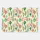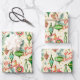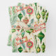 Dieses lebendige Verpackungspapier zeigt ein Retro-inspiriertes Weihnachtsdesign auf einem hellen, gesprenkelten Hintergrund, der auf eine Vintage Papierstruktur hinweist. Das Muster ist reich an einer Vielzahl traditionell geformter Weihnachtsschmuck in Grün-, Gold- und Rosa-/Rottönen. Diese Ornamente sind mit aufwändigen Details wie Streifen, Wirbel und Texturen versehen, die ihnen ein verziertes und klassisches Aussehen verleihen. Sie scheinen zu hängen, mit subtilen Linien, die sich nach oben wie von einem Zweig aus erstrecken. Unter den Ornamenten sind zarte grüne Kiefernnadeln oder Sprigs, sowie kleine goldene Sternexplosionen und Punkte, die ein festliches Funkeln hinzufügen. Im Design dominiert die Phrase "Frohe Weihnachten", geschrieben in einem charmanten, leicht bedrückten roten Drehbuch, das eine warme, persönliche Touch hinzufügt. Die Ästhetik ist ein nostalgischer Urlaubsszauber mit einem klaren Schwerpunkt auf klassischen Weihnachtsdekorationen.