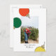 Modernes Design mit 3 Retro-Stilmöbeln in Rot, Grün und Gelb, umgeben von einem personalisierten Foto über einem individuellen saisonalen Gruß und Unterschrift. Entwurf von Shelby Allison und Foto von Joseph Gonzalez zu Unsplash