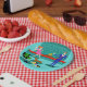 Retro-Paar mit Dog-Paper-Tellern Pappteller