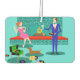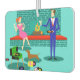 Dieses Retro-Paar mit Hund Air Freshener sieht aus wie eine Szene aus einer romantischen Komödie. Das minimalistische Design der 60er Jahre besticht durch ein ansprechendes Paar, das einen romantischen Abend bei der Zuhause genießt. Das elegante Zimmer besticht durch ein Aqua- und einen aquamarinen Backsteinkamin mit leuchtend rotem Kamin. Eine schöne, rötliche Frau, die ein helles, rosa Kleid trägt, steht auf der Spitze. Sie genießt einen Martini mit einem schwimmenden Oliven, einem rauschenden Feuer, guter Musik, und die Gesellschaft ein großer, dunkler und gut aussehender Mann. Der Mann trägt einen blauen Anzug und eine rote Krawatte. Sein Martini-Glas wird aufgezogen, um seinen bezaubernden Begleiter zu Toast. In seiner anderen Hand hält er ein Schallplattenalbum. An seinen Füßen sehen wir eine bezauberndste Dackel, die einen roten Kragen trägt. Der spielerische Dackel-Hund läuft in Richtung eines grünen Plattenspielers mit orangefarbenen Spindelbeinen. Auf dem Boden gibt es eine bunte Gruppe von lustigen, eklektischen, Vinyl-Platten. Prost! Hier ist der perfekte Abend bei Zuhause.