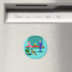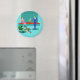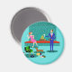 Dieses Retro-Paar mit Hund Round Magnet sieht aus wie eine Szene aus einer romantischen Komödie. Das minimalistische Design der 60er Jahre besticht durch ein ansprechendes Paar, das einen romantischen Abend bei der Zuhause genießt. Das elegante Zimmer besticht durch ein Aqua- und einen aquamarinen Backsteinkamin mit leuchtend rotem Kamin. Eine schöne, rötliche Frau, die ein helles, rosa Kleid trägt, steht auf der Spitze. Sie genießt einen Martini mit einem schwimmenden Oliven, einem rauschenden Feuer, guter Musik, und die Gesellschaft ein großer, dunkler und gut aussehender Mann. Der Mann trägt einen blauen Anzug und eine rote Krawatte. Sein Martini-Glas wird aufgezogen, um seinen bezaubernden Begleiter zu Toast. In seiner anderen Hand hält er ein Schallplattenalbum. An seinen Füßen sehen wir eine bezauberndste Dackel, die einen roten Kragen trägt. Der spielerische Dackel-Hund läuft in Richtung eines grünen Plattenspielers mit orangefarbenen Spindelbeinen. Auf dem Boden gibt es eine bunte Gruppe von lustigen, eklektischen, Vinyl-Platten. Prost! Hier ist der perfekte Abend bei Zuhause.
