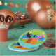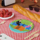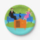 Diese Retro Couple mit Cat Paper Tellern sind mit einem Cartoon ausgestattet, das sich auf einem modernen, blauen Sofa aus der Mitte des Jahrhunderts beim Fernsehen gemütlich fühlt. Die Katze hat jedoch andere Ideen. Auf der einen Seite des Sofas befindet sich ein gut aussehender Mann in einem schwarzen Anzug mit roter Krawatte. Auf der anderen Seite des stylischen Sofas befindet sich eine schöne, blonde Frau in einem formschönen, heißen rosa Kleid. Es wäre toll, wenn es nicht die schwarze, schlampige Katze wäre, die das Sofa-Kissen in der Mitte beansprucht. Das minimalistische Design der 60er Jahre ist ein Set in einem stilvollen Wohnzimmer. Die Kulisse des Sofas ist eine grüne, steinerne Wand. Auf dem Wasserboden befindet sich ein runder, grüner Teppich, der zur Steinmauer passt. An der Spitze des Designs sehen wir die Rückseite eines orangefarbenen Set mit Kaninchenohren, das anscheinend das Lieblingsfernsehprogramm der Katze spielt.