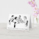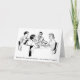 Eine Vintage Abbildung von zwei Retro-Paaren, die gemeinsam ein Abendessen genießen. Jeder lächelt, wie eine Frau der anderen sagt: "Rache? Es ist einfach nicht mein Stil.. aber es kommt zu Unfällen." Die Innenseite der Karte ist leer für Ihre eigene Nachricht.