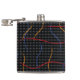 Retro 1980er Primärfarbenstriche zeichnen Spritzer-Muster auf einem geometrisch schwarz-weiß gepunkteten Hintergrund.